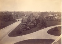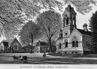 Members of the Cincinnati Horticultural Society formed a cemetery association in 1844 to find a location suitable for creating a picturesque park like institution. On December 1, 1844, Salmon Chase and others prepared the Articles of Incorporation and the original 220 acres of “The Cemetery of Spring Grove” were dedicated on August 28, 1845. At the consecration ceremony the founders publicly proclaimed their hope that the natural setting would be a contemplative atmosphere conducive to consolation, commemoration, and education.