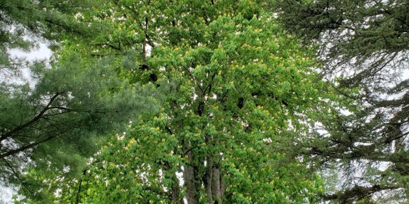 This buckeye predates Spring Grove Cemetery’s founding in 1845 and was part of the Mill Creek floodplain plant community of Yellow Buckeye, American Elm and American Sycamore. Yellow Buckeye grows native in counties along the Ohio River going inland roughly in the unglaciated portion of Southeast Ohio. Our specimen measured a circumference of 178-inches, a height at 104 feet height and a spread of 77-feet for a total of 301-points. It can be found in Section 22.