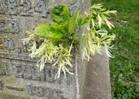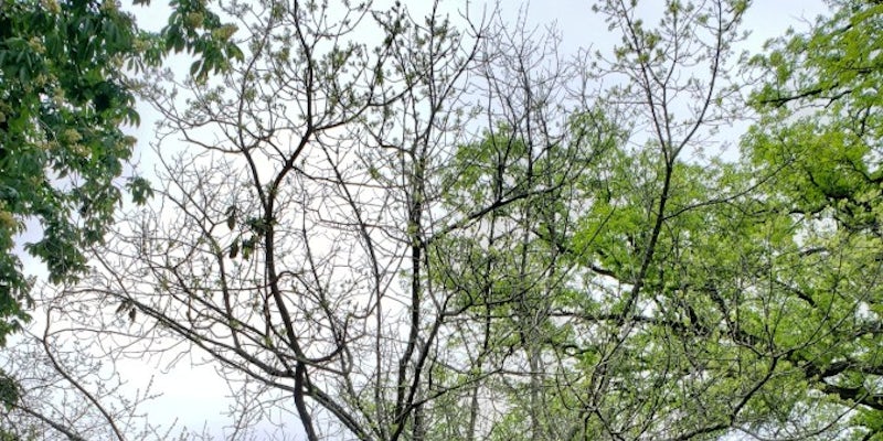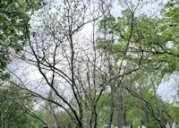 Spring Grove’s champion American Fringetree can be found in Ohio’s southernmost counties but is adaptable throughout the state. Although its Asian cousin grows as a small tree, this taxon grows as a large multi-leader shrub that can be trained to grow as a small multi-leader tree with continuous effort. This specimen is in declining condition, but we have one other specimen that is larger than the designated champion. The current champion measured its largest leader to 27-inches, a height of 24-feet height and 22-feet for crown spread totaling 54-points. The champion tree has its boulder closer to it and away from the companion American Fringetree at the northern side of Section 101.