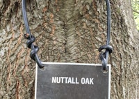 The display sign doesn’t show the current accepted botanical name for this specimen. Unfortunately for Latin-prone plant people, this oak has been bounced around the spectrum of red oak group trees. Nuttall Oak is native to the lower Mississippi valley but demonstrates good tolerance for northern conditions. At first glance you may think you are viewing a red oak pin oak, scarlet oak or a Shumard oak which explains the fact that oaks in North America freely hybridize. This specimen measured a circumference of 57-inches, 45-foot height, 37.5-foot crown spread and came out with 111-points and is located near the barn at the north end of Section 88.