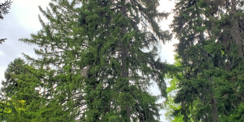 This tree is said to have arrived at Spring Grove in the quantity of 500 and E.H. Wilson commented on a visit here that he thought our specimens were among the first ones introduced to the United States. It is definitely the friendliest of all the spruce species growing at Spring Grove with its short, plump and round tipped needles. The tree is described botanically as pyramidal in shape but that pertains only to the terminal area. The remaining portion of the tree is columnar and in time will reach 100-feet in height. This native of the Caucasus is another example of ease of culture those plants have in this part of the world. Our champion specimen reads at a 81-inch circumference, 89-foot height, 26-foot spread and rated at 177-points. The champion tree is in a small colony of like trees at the northern part of Section 47.