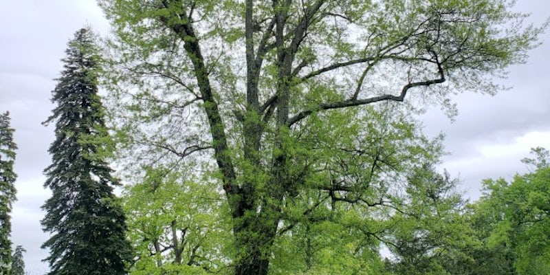 This native Eastern United States native is considered a non-native entry on the Ohio Champion Tree list. Its range approaches Ohio in Kentucky but ventures up the East Coast to New Jersey. It’s described as a weed tree in Georgia but the flowers must freeze in this part of Ohio because the nut (acorn) is not seen on the two large specimens at Spring Grove. The unique foliage has three rounded terminal lobes on a slender blade. The tallest trees reach over 100-feet in height but our champion specimen was measured to 80-feet. The champion specimen in Section 113 measured 138-inches in circumference, 81-feet in crown spread and 238 points. The backup specimen in Section 30 at 201-points is the second rated water oak in Ohio.